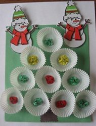 Here's what you'll need... • Green background paper, construction paper or scrapbook paper can be used. • A small piece of brown paper. • 10 white candy wrappers (or small muffin cups) and 10 smaller foil wrappers (or any other embellishments you choose to decorate your tree). • Glue stick
