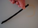4. To make the bow cut your pipe cleaner in half. Twist the two pieces to make one thick one. Cut your rubber band in half and twist it between the two pipe cleaners at one end, and then the other. Twist the pipe cleaner around the rubber band until it's secure.