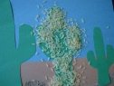 4. Sprinkle rice all over your glue dots, you can press down on the rice a little, then shake off the excess. Do this for each cactus, and you've created a wonderful cactus collage!