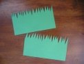 2. Cut a long strip of green construction paper to fit around the TP roll (a rectangle measuring 51/2"X 3" will fit nicely around your roll). Cut small triangles out of the top third or so to make the "grass." Once the paint is dry glue the grass around the (unpainted) bottom of the TP roll.