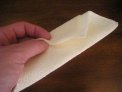 3. Fold your napkin in half to make a triangle. Then fold the tip of the triangle down. Insert your bunny's ears into the top of the napkin holder! Glue a cotton ball onto the back of the TP roll for the bunny's tail! You're done, great job!