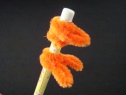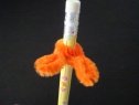 1. This ones a little more challenging. Cut your orange pipe cleaner in half. Place the pencil in the middle of an orange pipe cleaner, wrap it around a couple of times (this should be about 1-1½ inches down the pencil).