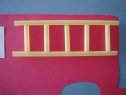 2. Use straws to make the ladder. Cut two long pieces for the sides, and small pieces for the rungs. Glue in place on your fire truck.