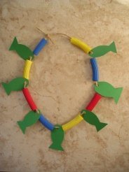 This Loaves and Fishes Necklace is a great craft for preschoolers (and up) to go with the 'loaves and fishes miracle' bible story. The macaroni represents the loaves and the fish represent, well, the fish. If you want to make this craft quicker or don't have any paint, just don't paint the 'loaves', perhaps you can make your fish different colors to make it more bright.