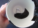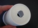 2. Cut a hole in the bottom of your cup, about the same size as the bottom of your foil hook.