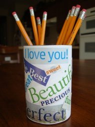 Tell someone how great they are by making them this Special Words Pencil Holder. It's made from 100% recycled materials that you a have around the house! A great homemade gift for Mother's Day, Father's Day or for someone special!