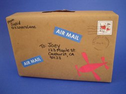1. Wrap your box in brown paper, just as you would a regular package. Address your mail to the child's name and address, and from Cupid, who's address could be 123 Lovers Lane!